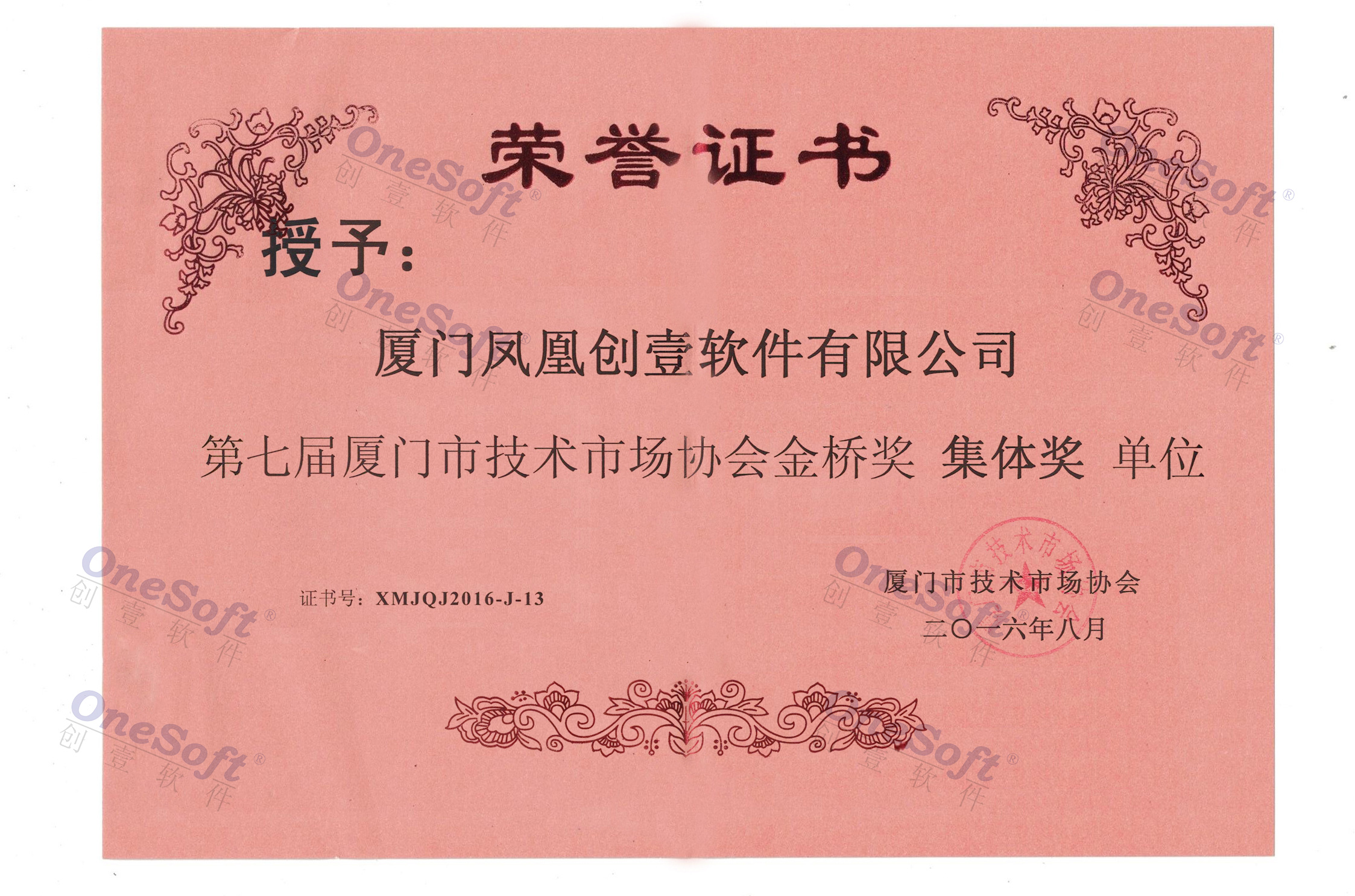 2016廈門金橋獎(jiǎng)集體獎(jiǎng)