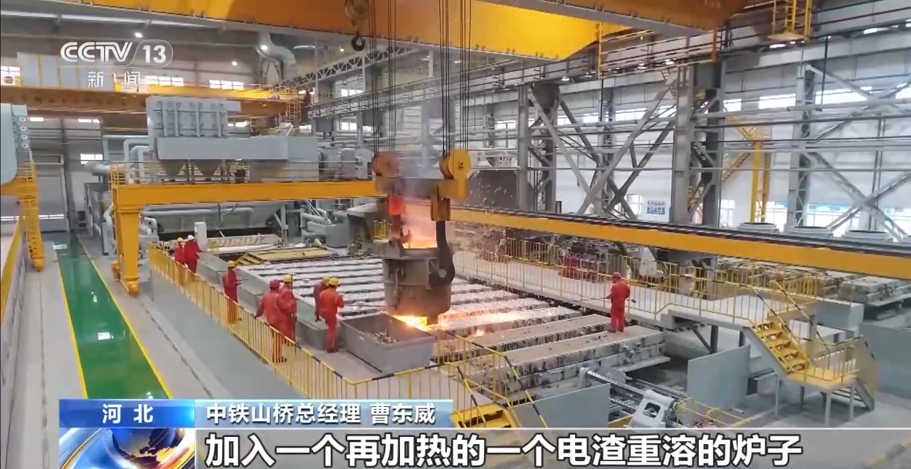 中鐵山橋總經(jīng)理 曹東威:一個是真空精煉爐, 也就是說去除有害的氣體,氫、氮、氧。還有在冶煉的后續(xù)環(huán)節(jié)加入一個再加熱的電渣重熔爐子,這樣整個出鋼水的質(zhì)量等級會大幅提高。