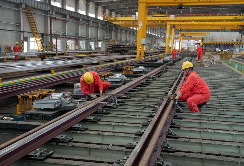 ??↑6月11日,河北省秦皇島市山海關(guān)區(qū)中鐵山橋集團有限公司的工人在道岔生產(chǎn)車間工作。 近日,隨著國內(nèi)一些重要鐵路及地鐵項目有序推進,承接鐵路道岔生產(chǎn)任務(wù)的河北省秦皇島市山海關(guān)區(qū)中鐵山橋集團有限公司生產(chǎn)車間內(nèi)一派繁忙,工人們正保質(zhì)保量加緊生產(chǎn),助力中國鐵路交通建設(shè)。中鐵山橋始創(chuàng)于1894年,生產(chǎn)的道岔產(chǎn)品遠銷30多個國家和地區(qū)。 新華社記者 楊世堯 攝