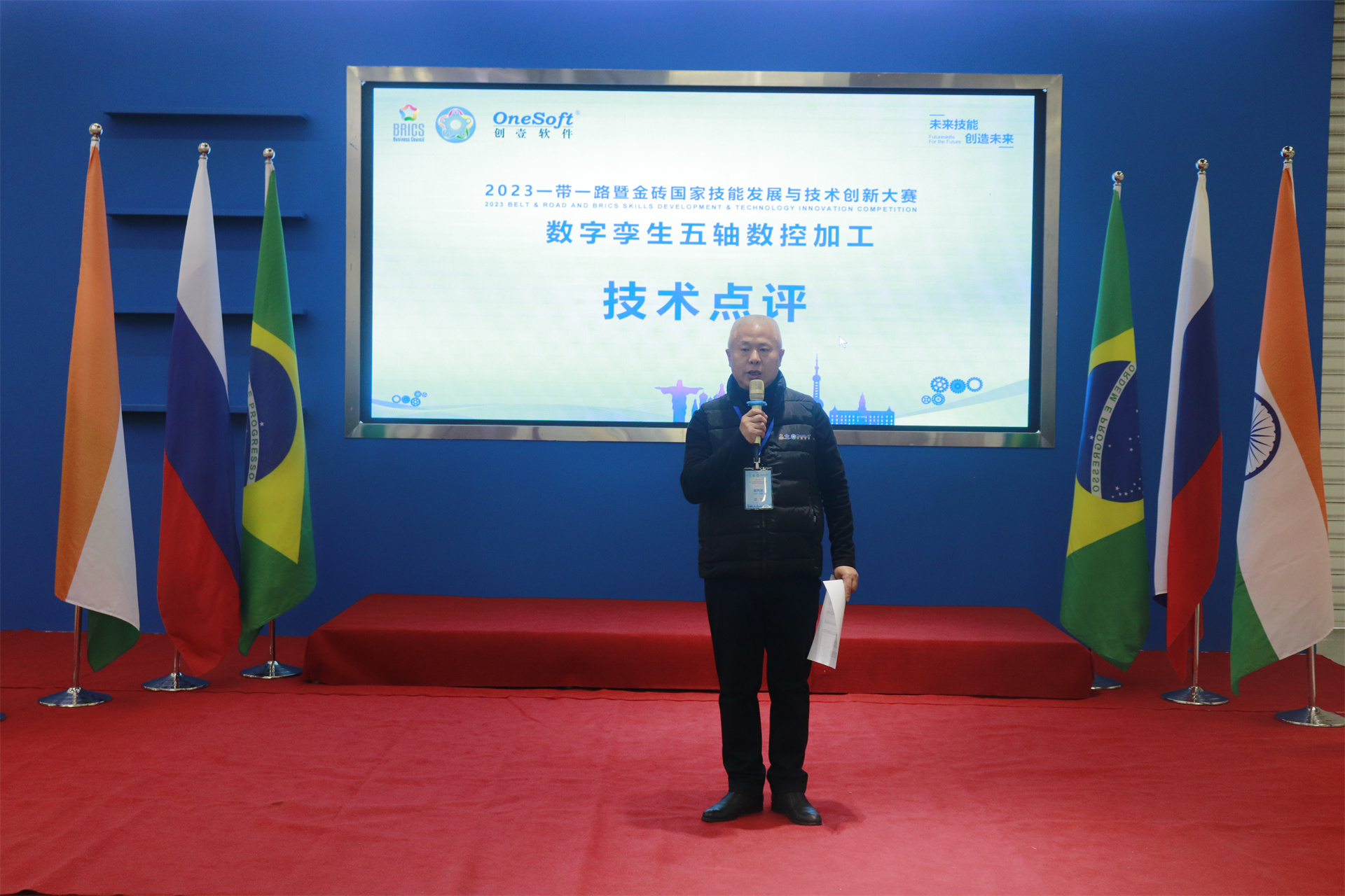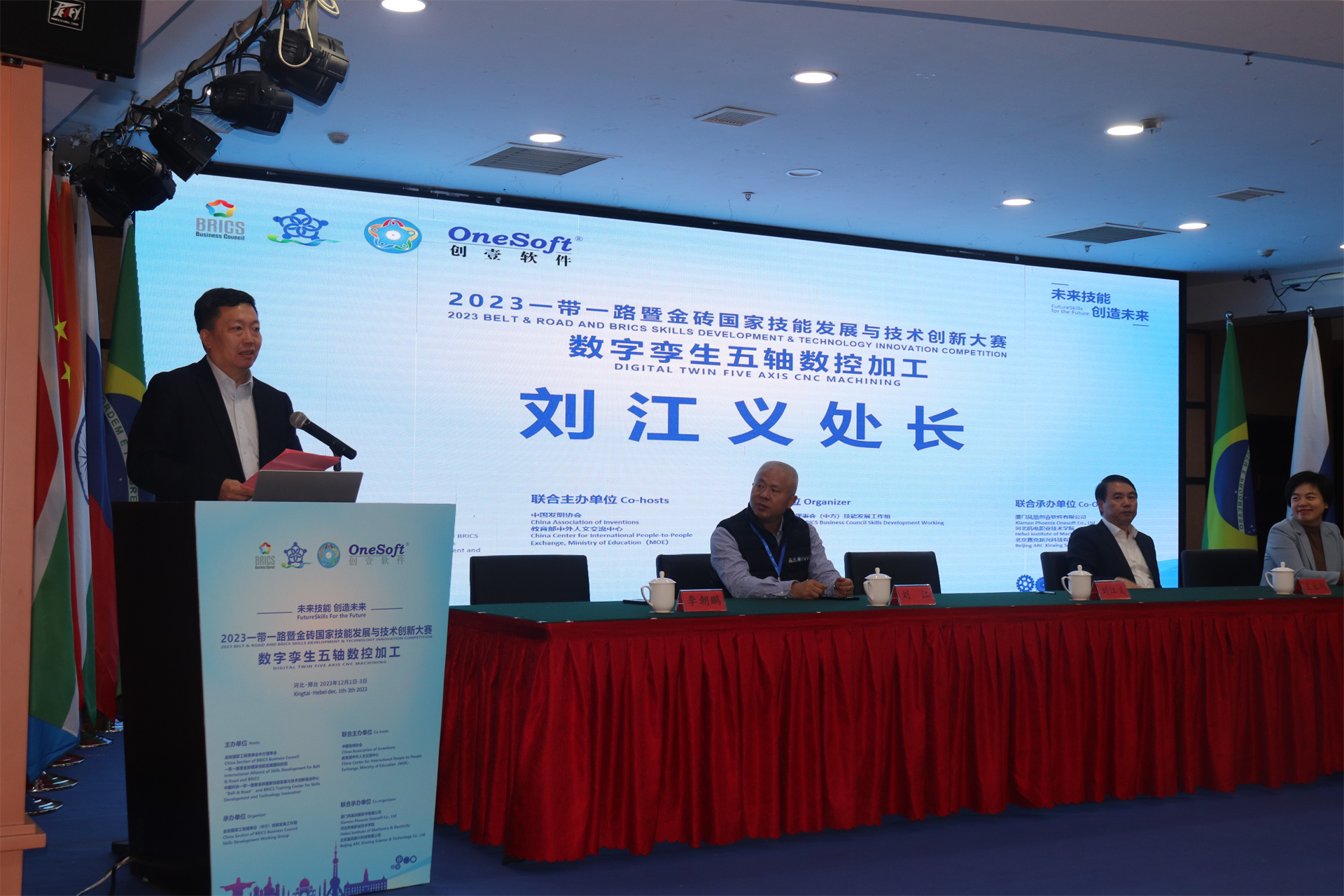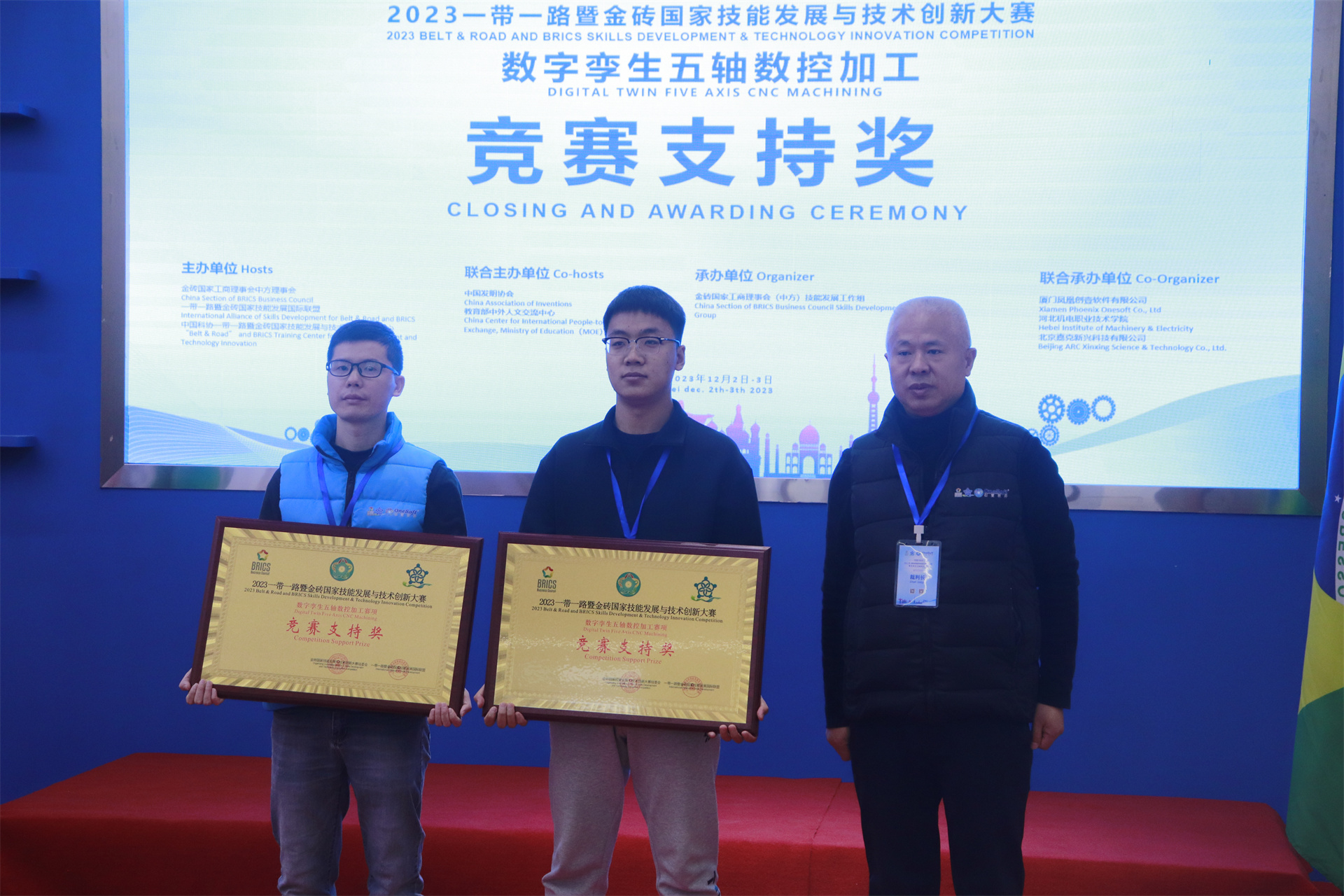 12月1日,2023一帶一路暨金磚國(guó)家技能發(fā)展與技術(shù)創(chuàng)新大賽數(shù)字孿生五軸數(shù)控加工賽項(xiàng)國(guó)內(nèi)決賽開(kāi)幕式在萬(wàn)峰大酒店舉行,由河北機(jī)電職業(yè)技術(shù)學(xué)院副院長(zhǎng)李朝鵬主持。金磚國(guó)家工商理事會(huì)(中方)技能發(fā)展工作組組長(zhǎng)、金磚國(guó)家技能發(fā)展與技術(shù)創(chuàng)新大賽組委會(huì)執(zhí)委會(huì)主席劉振英視頻致辭,中國(guó)教育國(guó)際交流協(xié)會(huì)副會(huì)長(zhǎng),前秘書長(zhǎng)王永利、金磚國(guó)家技能發(fā)展與技術(shù)創(chuàng)新大賽組委會(huì)副主任何美連,河北省教育廳國(guó)際處劉江義處長(zhǎng)、河北機(jī)電職業(yè)技術(shù)學(xué)院院長(zhǎng)王曉鳳、廈門鳳凰創(chuàng)壹軟件有限公司運(yùn)營(yíng)總監(jiān)陳海寧等領(lǐng)導(dǎo)受邀出席并致辭。河北機(jī)電職業(yè)技術(shù)學(xué)院繼續(xù)教育部主任李成革、廈門鳳凰創(chuàng)壹軟件有限公司高級(jí)總監(jiān)江蕓梅等領(lǐng)導(dǎo)出席開(kāi)幕式,仲裁長(zhǎng)、總裁判長(zhǎng)及裁判組成員、行業(yè)專家、參賽院校領(lǐng)隊(duì)、指導(dǎo)老師、參賽選手等近百人參加了開(kāi)幕式。