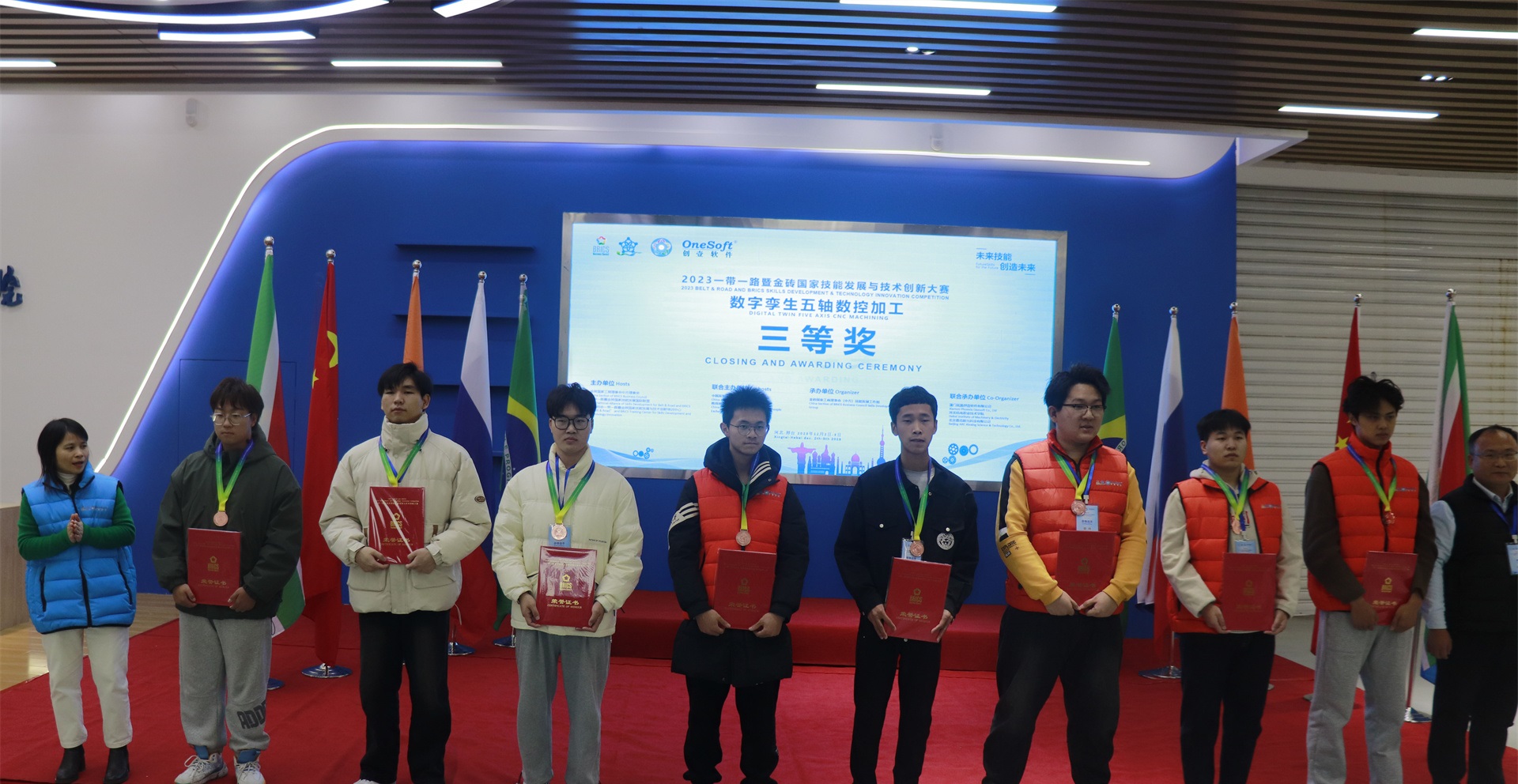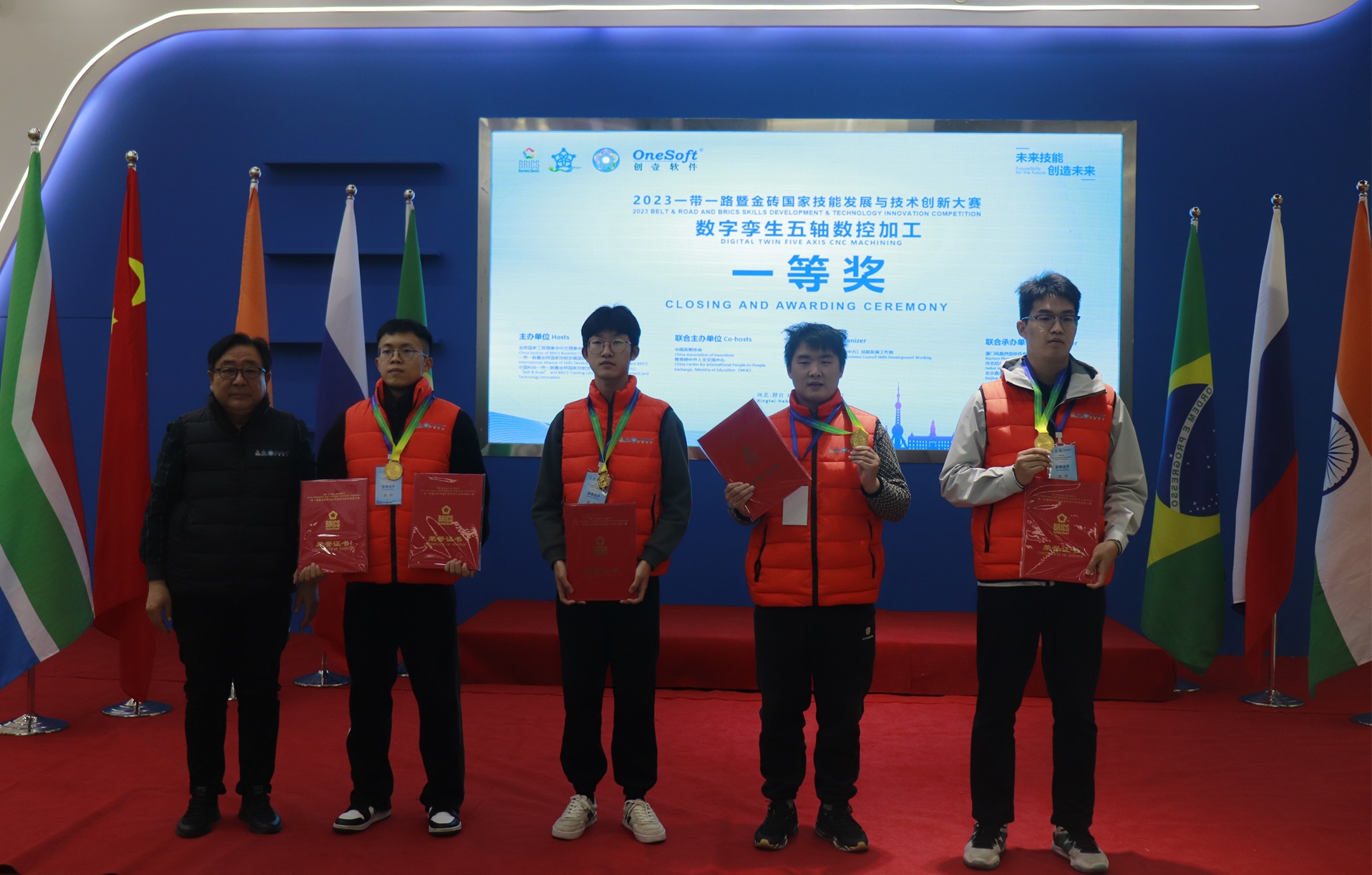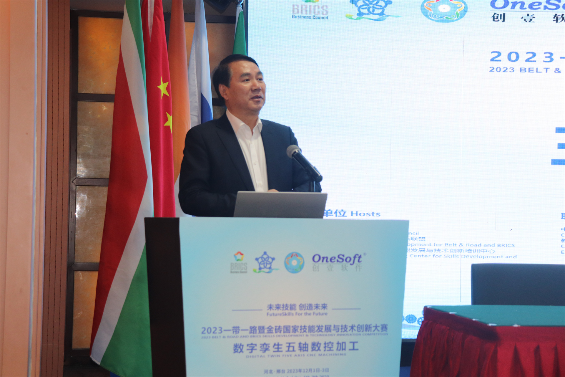 12月1日,2023一帶一路暨金磚國(guó)家技能發(fā)展與技術(shù)創(chuàng)新大賽數(shù)字孿生五軸數(shù)控加工賽項(xiàng)國(guó)內(nèi)決賽開(kāi)幕式在萬(wàn)峰大酒店舉行,由河北機(jī)電職業(yè)技術(shù)學(xué)院副院長(zhǎng)李朝鵬主持。金磚國(guó)家工商理事會(huì)(中方)技能發(fā)展工作組組長(zhǎng)、金磚國(guó)家技能發(fā)展與技術(shù)創(chuàng)新大賽組委會(huì)執(zhí)委會(huì)主席劉振英視頻致辭,中國(guó)教育國(guó)際交流協(xié)會(huì)副會(huì)長(zhǎng),前秘書長(zhǎng)王永利、金磚國(guó)家技能發(fā)展與技術(shù)創(chuàng)新大賽組委會(huì)副主任何美連,河北省教育廳國(guó)際處劉江義處長(zhǎng)、河北機(jī)電職業(yè)技術(shù)學(xué)院院長(zhǎng)王曉鳳、廈門鳳凰創(chuàng)壹軟件有限公司運(yùn)營(yíng)總監(jiān)陳海寧等領(lǐng)導(dǎo)受邀出席并致辭。河北機(jī)電職業(yè)技術(shù)學(xué)院繼續(xù)教育部主任李成革、廈門鳳凰創(chuàng)壹軟件有限公司高級(jí)總監(jiān)江蕓梅等領(lǐng)導(dǎo)出席開(kāi)幕式,仲裁長(zhǎng)、總裁判長(zhǎng)及裁判組成員、行業(yè)專家、參賽院校領(lǐng)隊(duì)、指導(dǎo)老師、參賽選手等近百人參加了開(kāi)幕式。
