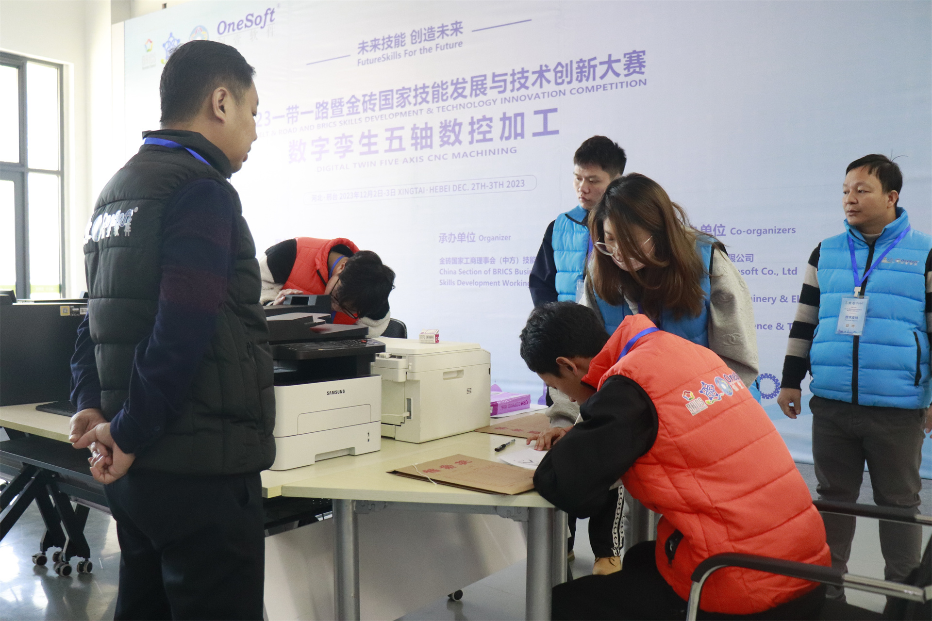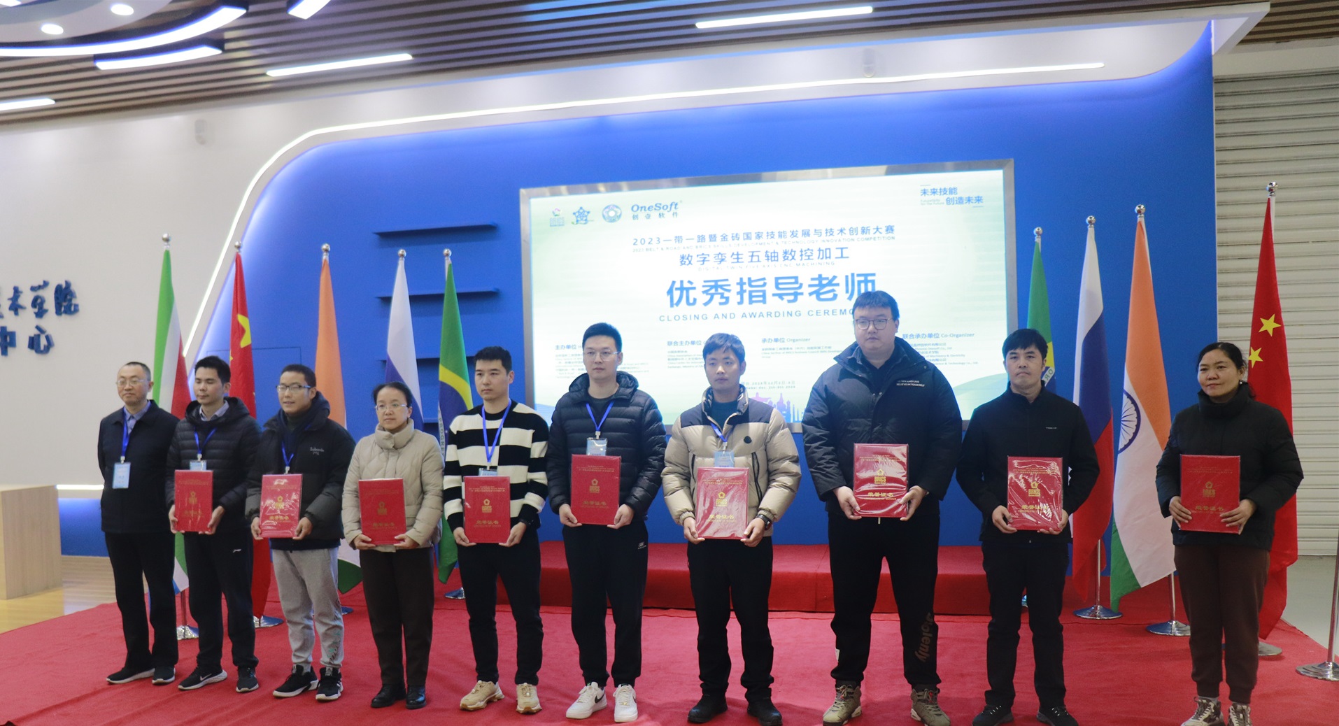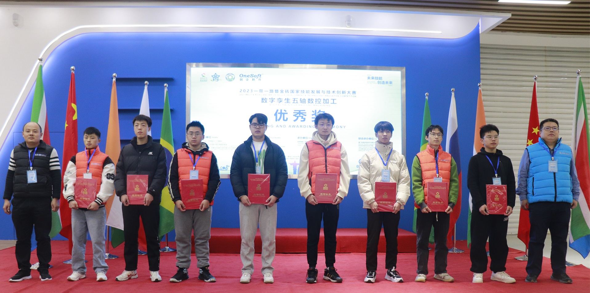 數(shù)字孿生五軸數(shù)控加工賽項(xiàng)于2023年7月開(kāi)始組織籌備,歷經(jīng)技術(shù)方案評(píng)審、選手賽前培訓(xùn)、裁判培訓(xùn),共有來(lái)自全國(guó)20多個(gè)省份49所院校200多名選手報(bào)名參加,最終36名選手進(jìn)入全國(guó)總決賽。在河北機(jī)電職業(yè)技術(shù)學(xué)院展開(kāi)為期2天的榮耀對(duì)決,群英匯聚展現(xiàn)新時(shí)代新職業(yè)新工種技能人才風(fēng)采。最終決出一等獎(jiǎng)4名、二等獎(jiǎng)8名、三等獎(jiǎng)11名、優(yōu)秀獎(jiǎng)14名,優(yōu)秀指導(dǎo)老師12名,最佳組織獎(jiǎng)4個(gè),優(yōu)秀組織獎(jiǎng)4個(gè),突出貢獻(xiàn)獎(jiǎng)2個(gè),競(jìng)賽支持獎(jiǎng)1個(gè)。