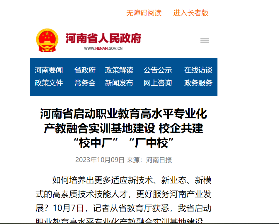 按照計(jì)劃,河南省將在全省布局建設(shè)不少于60個(gè)創(chuàng)新資源匯聚能力突出、產(chǎn)教融合示范作用顯著、服務(wù)區(qū)域和經(jīng)濟(jì)發(fā)展成果卓越的高水平專業(yè)化產(chǎn)教融合實(shí)訓(xùn)基地。2023年,擬在全省高等職業(yè)學(xué)校中遴選建設(shè)30個(gè)左右高水平專業(yè)化產(chǎn)教融合實(shí)訓(xùn)基地。