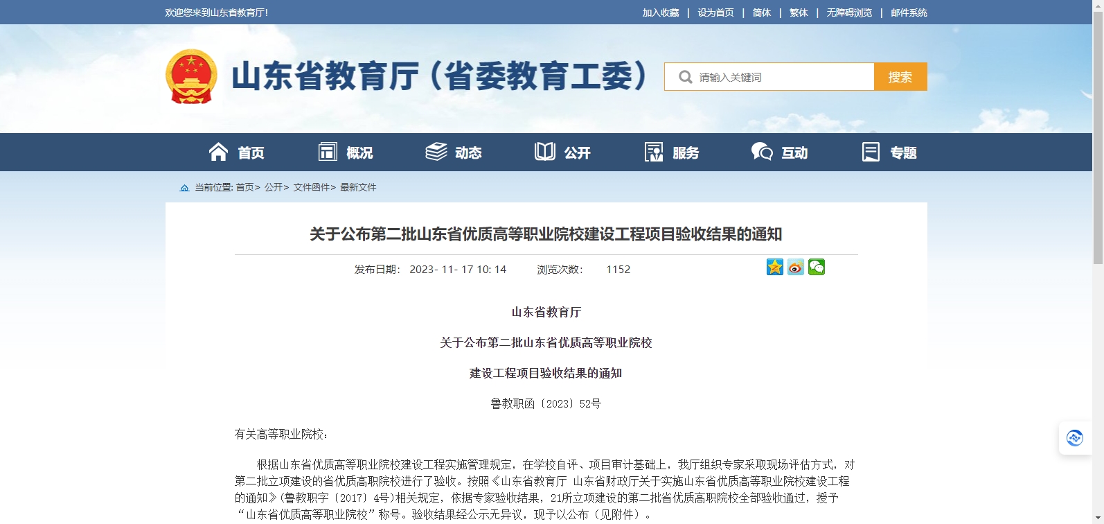 第二批山東省優(yōu)質(zhì)高等職業(yè)院校建設(shè)工程項(xiàng)目驗(yàn)收結(jié)果公布