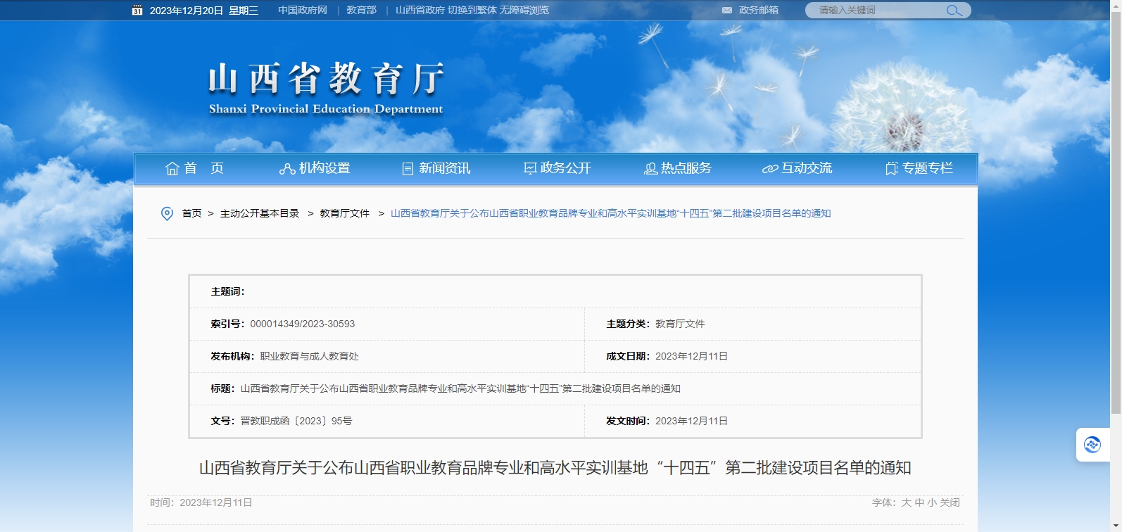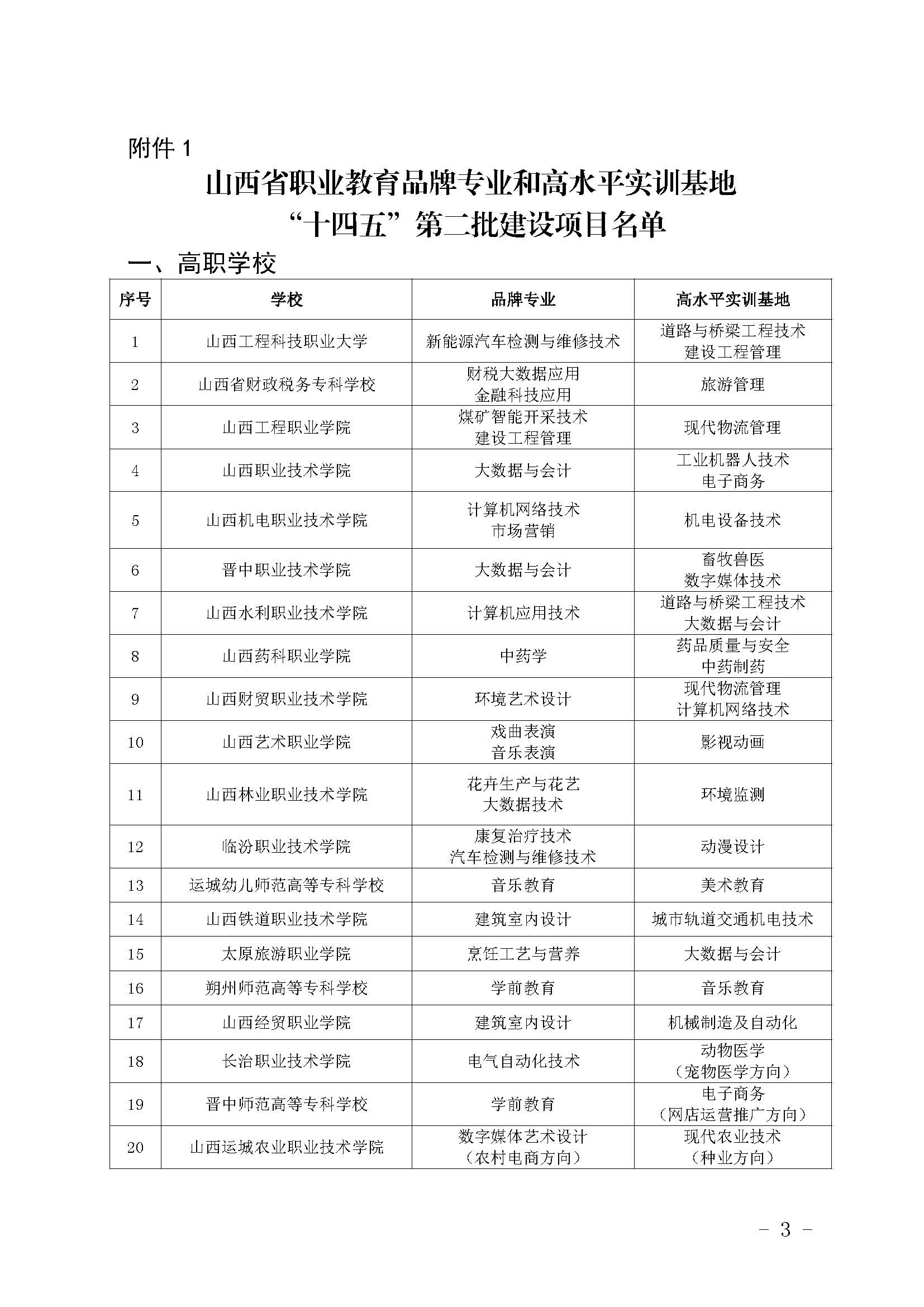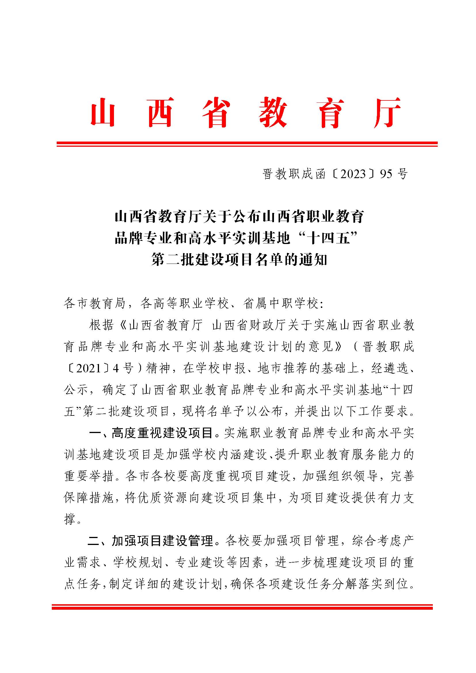 近日,山西省教育廳公布山西省職業(yè)教育品牌專業(yè)和高水平實(shí)訓(xùn)基地“十四五”第二批建設(shè)項(xiàng)目名單的通知,高職學(xué)校38所,中職學(xué)校71所,10個自籌項(xiàng)目。