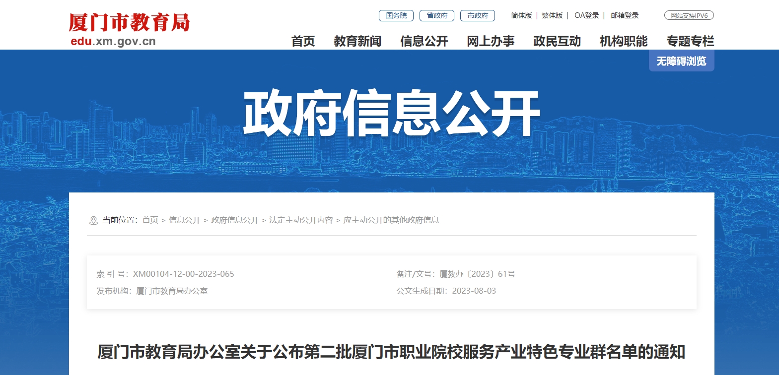 近日,廈門市教育局在其官網上發(fā)布《廈門市教育局辦公室關于公布廈門市應用型本科高校高水平專業(yè)立項建設名單的通知》,根據《廈門市教育局關于實施應用型本科高校高水平專業(yè)建設計劃的通知》(廈教發(fā)〔2023〕5......