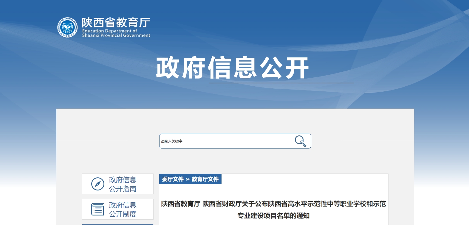 陜西省教育廳、陜西省財政廳公布陜西省高水平示范性中等職業(yè)學校和示范專業(yè)建設項目名單