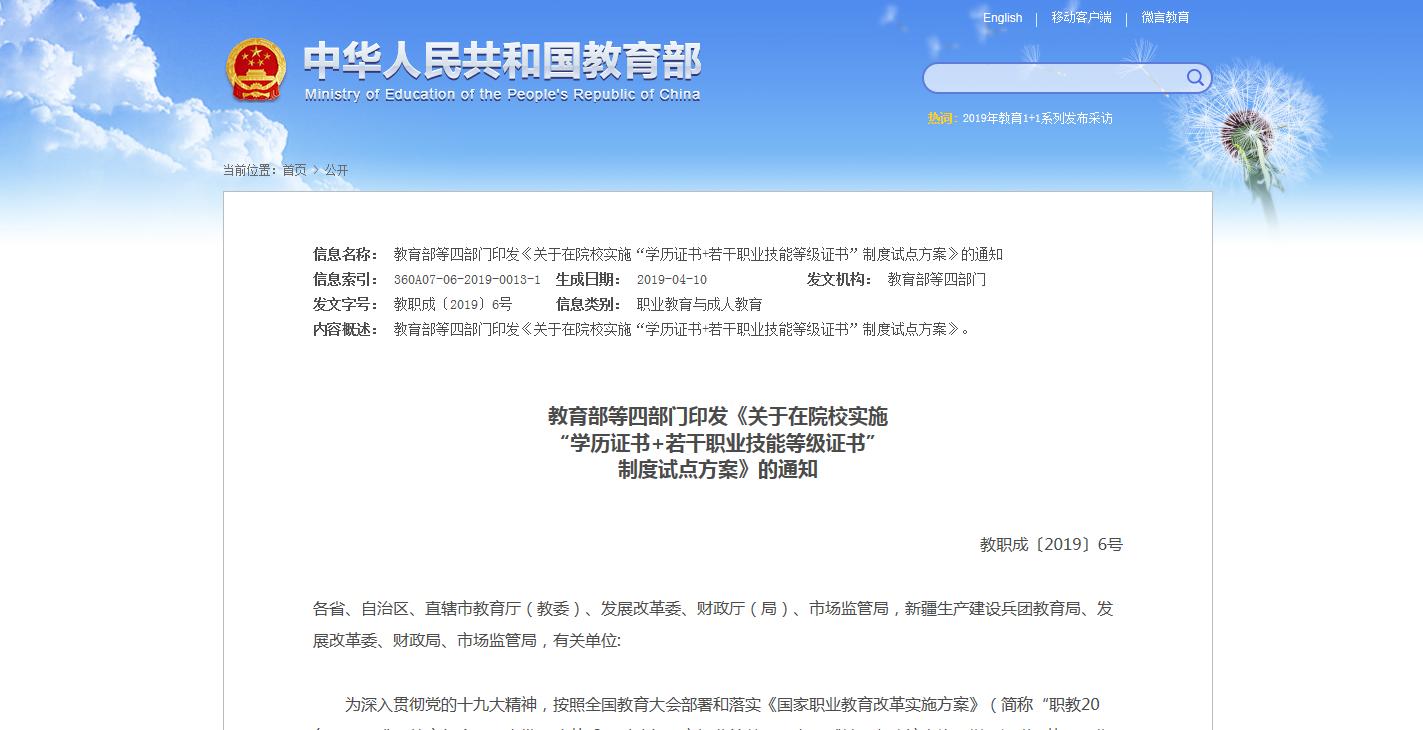 4月12日,教育部職業(yè)教育與成人教育司在教育部官網(wǎng)發(fā)布關(guān)于印發(fā)《職業(yè)教育與繼續(xù)教育2019年工作要點(diǎn)》的函,《要點(diǎn)》對(duì)完善中等和高等職業(yè)教育和培訓(xùn)體系,校企合作、產(chǎn)教融合,加快高水平院校和專(zhuān)業(yè)建設(shè)等方......