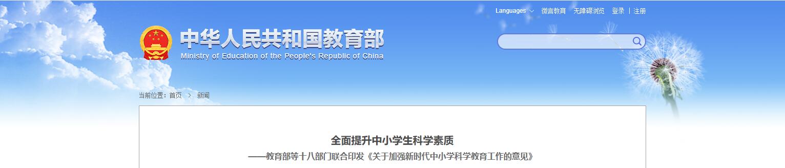 全面提升中小學(xué)生科學(xué)素質(zhì) ——教育部等十八部門(mén)聯(lián)合印發(fā)《關(guān)于加強(qiáng)新時(shí)代中小學(xué)科學(xué)教育工作的意見(jiàn)》