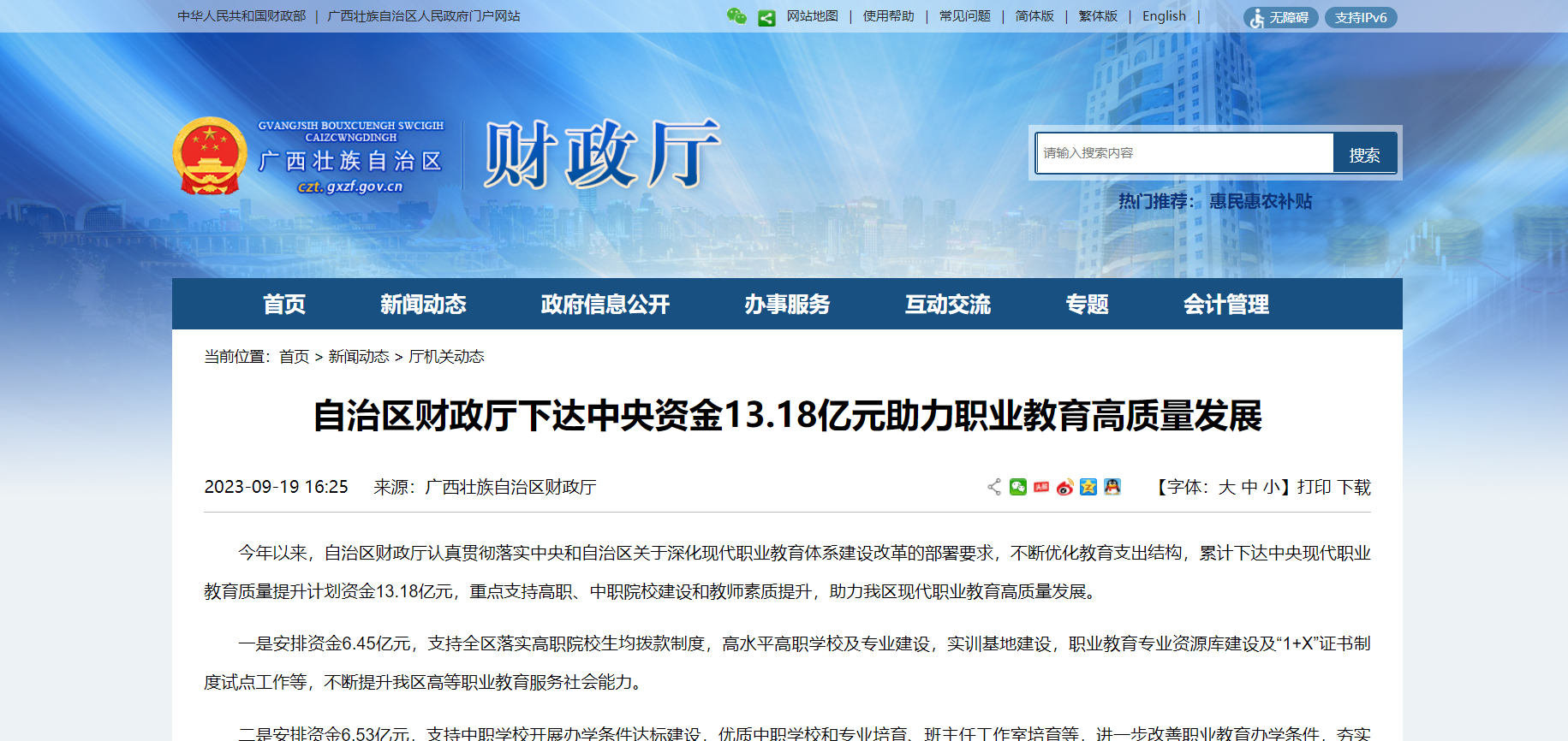 廣西自治區(qū)財(cái)政廳下達(dá)中央資金13.18億元助力職業(yè)教育高質(zhì)量發(fā)展