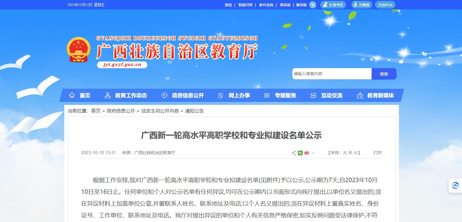 廣西壯族自治區(qū)教育廳近日在其官方發(fā)布《廣西新一輪高水平高職學(xué)校和專(zhuān)業(yè)擬建設(shè)名單公示》的通知,以下是名單