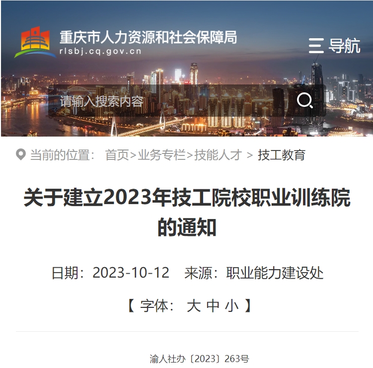 重慶市人力資源和社會(huì)保障局辦公室官方發(fā)布關(guān)于建立2023年技工院校職業(yè)訓(xùn)練院的通知,決定建立重慶工貿(mào)技師學(xué)院、重慶能源工業(yè)技師學(xué)院、重慶交通技師學(xué)院等3個(gè)技工院校職業(yè)訓(xùn)練院,項(xiàng)目建設(shè)周期為2年,按規(guī)定......
