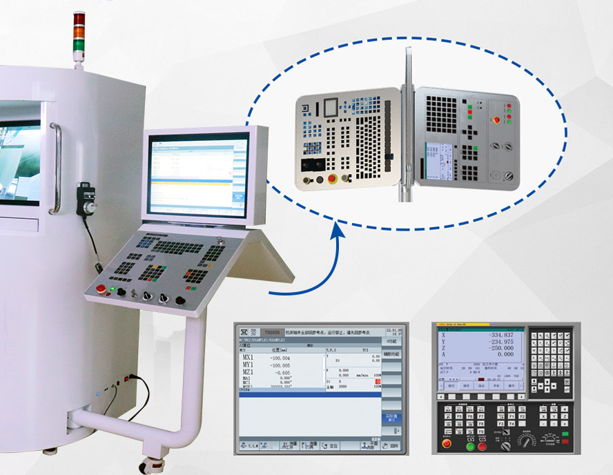 數(shù)控I8多軸智能訓(xùn)練機(jī)的操作面板,面板的布局與真實(shí)的數(shù)控設(shè)備面板一致,更為重要的是全國(guó)首創(chuàng)的支持更換操作面板專利產(chǎn)品。提供多達(dá)25款機(jī)型,覆蓋了數(shù)控車、數(shù)控銑、加工中心、四軸加工中心和五軸加工中心等多種類型機(jī)床。系統(tǒng)面板支持11款系統(tǒng)面板,包括了三軸的法蘭克、西門子、華中、廣數(shù)等。所有模板、操作精度、顯示精度與真實(shí)數(shù)控機(jī)床一致。